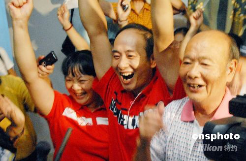 圖:何雯娜父母在家鄉(xiāng)為女兒奪得奧運冠軍歡呼