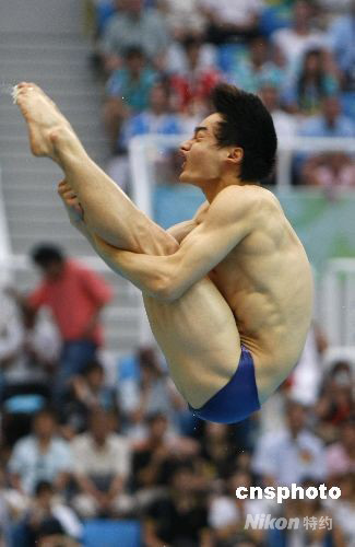 8月19日,北京奧運(yùn)會(huì)男子3米板半決賽在“水立方”進(jìn)行,中國選手秦凱順利晉級(jí)決賽。 中新社發(fā) 杜洋 攝