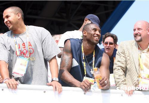 8月19日,美國籃球巨星科比前往奧運(yùn)沙灘排球現(xiàn)場(chǎng),為美國選手加油。 中新社發(fā) 武仲林 攝
