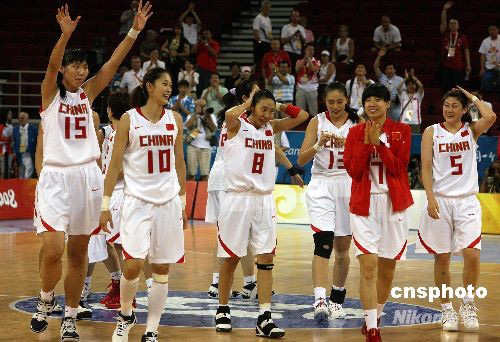 8月19日下午,北京奧運(yùn)會女子籃球四分之一淘汰賽在北京五棵松籃球館舉行,中國女籃以77比62擊敗白俄羅斯率先進(jìn)入前四強(qiáng)。這是16年之后中國女籃再次闖進(jìn)奧運(yùn)四強(qiáng)。中新社發(fā) 任晨鳴 攝