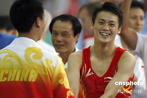 8月19日,中國選手陸春龍奪得北京奧運會男子蹦床金牌。中新社發(fā) 盛佳鵬 攝