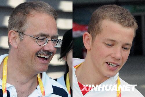 德國體操名將漢布?xì)J和他的父親。 新華社記者 黃勇 攝