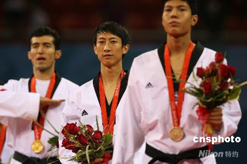 8月20日,中華臺北選手朱木炎獲得北京奧運(yùn)會跆拳道男子58公斤以下級銅牌。中新社發(fā) 武仲林 攝
