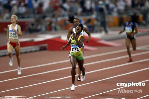 8月20日,北京奧運會女子400米欄的決賽在北京國家體育場“鳥巢”進行,來自牙買加的梅蘭·沃克以52秒64奪得金牌,這個成績也創(chuàng)造了新的奧運會紀錄。中新社發(fā) 盛佳鵬 攝