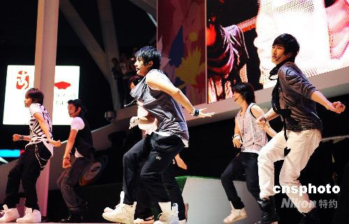 8月20日晚,亞洲當(dāng)紅組合“Super junior M”在奧林匹克公園激情獻(xiàn)唱。該組合是由韓國(guó)人和中國(guó)人組成的男子組合。中新社發(fā) 王東明 攝