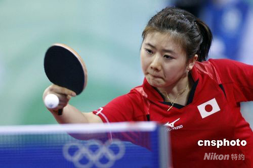 8月21日,北京奧運會乒乓球女子單打第四輪的比賽在北京大學體育館進行,日本選手福原愛不敵中國選手張怡寧遭淘汰。 中新社發(fā) 盛佳鵬 攝