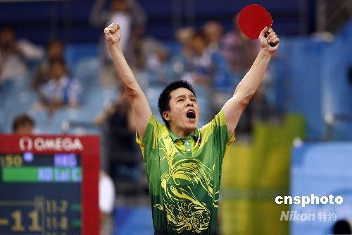 8月21日,北京奧運(yùn)會(huì)乒乓球男子單打第三輪的比賽在北京大學(xué)體育館進(jìn)行,中國(guó)香港選手高禮澤4比2戰(zhàn)勝韓國(guó)名將柳承敏晉級(jí)下一輪比賽。中新社發(fā) 盛佳鵬 攝