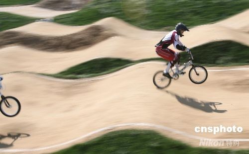 8月22日,拉脫維亞選手馬里斯·斯特龍貝格斯(右)在北京奧運(yùn)會(huì)小輪車男子競(jìng)速?zèng)Q賽中奪得冠軍,從而成為該項(xiàng)目奧運(yùn)歷史上的首位冠軍。 中新社發(fā) 武仲林 攝