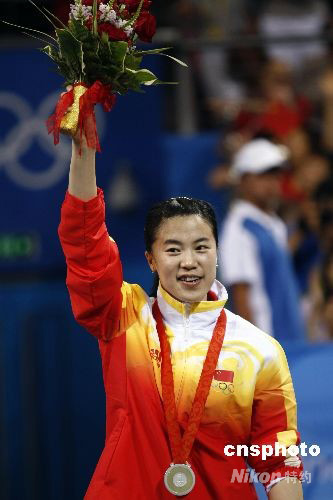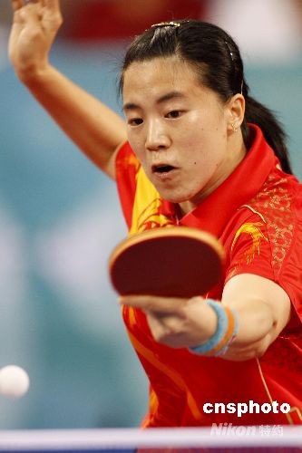 8月22日晚,在北京大學(xué)體育館進(jìn)行的北京奧運(yùn)會(huì)乒乓球女子單打決賽中,中國(guó)乒乓球老將王楠以1-4不敵自己的隊(duì)友張怡寧獲得亞軍。 中新社發(fā) 盛佳鵬 攝