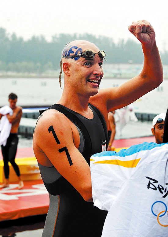 今天,27歲的荷蘭人范德韋登奪得了男子10公里馬拉松游泳的冠軍。鮮為人知的是,他在7年前還是一個(gè)絕癥患者。時(shí)至今日,他頭頂上還有兩個(gè)一元硬幣大小的傷疤——那是白血病患者做化療和骨髓移植的痕跡。