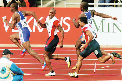 事件回放:美國隊(duì)憋足勁要在4×100米項(xiàng)目上好好作為。21日晚進(jìn)行的預(yù)賽中,美國隊(duì)分在A組,四棒選手分別是羅德尼馬丁、帕德格特、帕頓和蓋伊。美國隊(duì)頭三棒發(fā)揮正常,但在帕頓準(zhǔn)備交棒給第四棒蓋伊?xí)r意外失手,棒子很不客氣地掉在了地上。繼百米預(yù)賽意外“出局”之后,蓋伊又犯了一次“低級(jí)錯(cuò)誤”,也使得美國隊(duì)決賽欲與牙買加隊(duì)一爭(zhēng)高低的希望就此泡湯。更令美國人郁悶的是,一小時(shí)之后,美國女隊(duì)“復(fù)制”了男隊(duì)的錯(cuò)誤,同樣因交接棒失誤與決賽無緣。