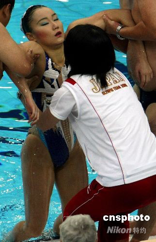 8月23日,北京奧運會花樣游泳的壓軸戲上演,八只強隊爭奪獎牌,長期位居世界大賽前三位置的日本隊不但出現(xiàn)失誤丟失銅牌,而且在比賽結(jié)束后一名選手在水中失去自治能力,在奧運會救護人員與日本隊隊友保護下緩緩挪到岸邊后昏厥,即刻被送醫(yī)院搶救。