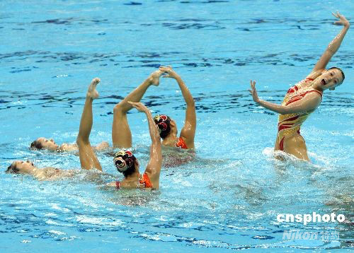 8月23日,北京奧運會花樣游泳集體項目比賽結(jié)束,中國隊以總分97.334分獲得銅牌,實現(xiàn)了奧運會在這個項目上的突破。俄羅斯隊憑99.500分獲得金牌,西班牙隊以98.251分奪得銀牌。中新社發(fā) 杜洋 攝
