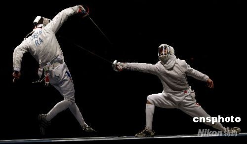 仲滿(右)的“追風(fēng)劍”出神入化,讓對手見識這傳聞至今無人能破的絕學(xué)的同時,也摘得男子佩劍個人賽冠軍。 中新社發(fā) 盛佳鵬 攝