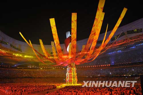 8月24日,2008年北京奧運(yùn)會在國家體育場——“鳥巢”隆重閉幕。圖為閉幕式上的表演。