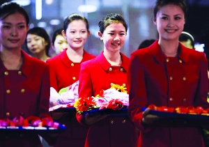 隨著我國各種重大賽事和活動的增多,對禮儀小姐的需求量也在大增,禮儀培訓也成為熱門。劉曉東老師告訴記者,今年職業(yè)高中招生許多專業(yè)都沒有招滿,但是和禮儀相關的航空服務專業(yè)卻出現(xiàn)飽和。“只招300多人,卻來了1000多人,就是因為這個專業(yè)的就業(yè)率和薪酬水平確實比較突出!庇浾吡私獾剑绻ㄏ蛉ズ娇展,一般的地勤人員算上補助可以拿到2000元至3000元的薪酬水平,表現(xiàn)特別出色的學生可以去外航,如韓亞航空每年招聘空姐的起薪就在1000美元左右。還有些學生因為形象好、外語好,也被一些金融機構看好,成為了大堂經(jīng)理。