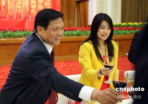 8月26日,2008年北京奧運會中國體育代表團總結(jié)大會在北京人民大會堂舉行。中共中央政治局委員、北京市委書記、北京奧組委主席劉淇向北京奧運會中國體育代表團敬酒致意。