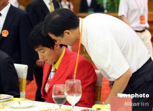 圖:劉翔參加北京奧運中國體育代表團宴會