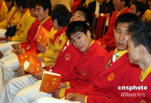 圖:火亮參加北京奧運會中國體育代表團總結(jié)大會