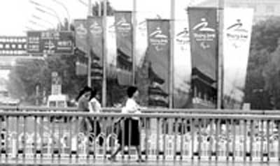昨天,很多市民發(fā)現(xiàn)大街上的“中國(guó)印”旗幟悄然換成了殘奧會(huì)的“天地人”旗幟(如圖)。據(jù)悉,近7萬面殘奧會(huì)旗幟轉(zhuǎn)換工作將于9月初結(jié)束。