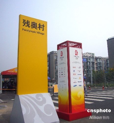 2008年8月28日,第13屆北京殘奧會彩旗在北京殘奧村四周迎風(fēng)飄揚(yáng)。當(dāng)日14時,殘奧村預(yù)開村,開始接待北京殘奧會運(yùn)動員。據(jù)悉,預(yù)計將有2000多名殘疾人運(yùn)動員入住殘奧村。中新社發(fā) 玉龍 攝