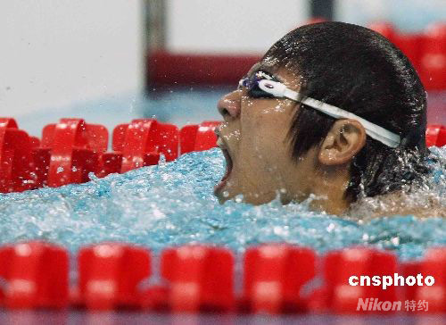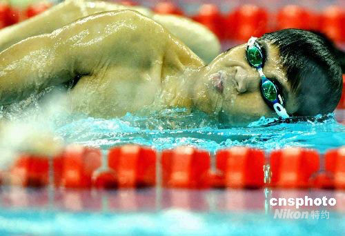 9月7日,在北京殘奧會男子100米自由泳-S3級別決賽中,中國選手杜劍平以1分35秒21的成績摘得金牌并打破世界紀(jì)錄,這是中國軍團(tuán)在本屆殘奧會上的首枚金牌。中新社發(fā) 任晨鳴 攝