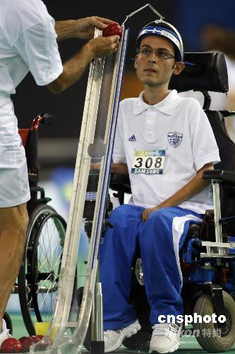 圖:殘奧會硬地滾球 中國選手朱賀僑不敵希臘選手
