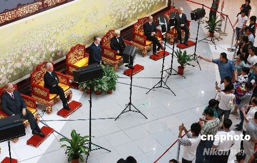 9月7日,顧拜旦、薩馬蘭奇、羅格等八位國(guó)際奧委會(huì)主席的蠟像作品《重生·永恒》在北京金街新東安商場(chǎng)里與公眾見面,并由此拉開了在中國(guó)29個(gè)城市和國(guó)外部分城市巡展的序幕。栩栩如生的人物造型吸引了眾多游客駐足拍照留念。中新社發(fā) 鄭雄增 攝