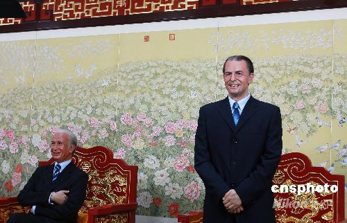 圖為國(guó)際奧委會(huì)主席羅格(右一)、薩馬蘭奇(左一)蠟像作品。