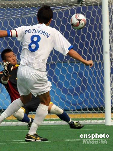 北京殘奧會(huì)七人制(男子)足球比賽9月8日在北京奧林匹克公園內(nèi)的橄欖球場(chǎng)開(kāi)賽,在首場(chǎng)比賽中,中國(guó)隊(duì)因?yàn)榕c對(duì)手俄羅斯隊(duì)實(shí)力過(guò)于懸殊最終以0比6失敗。圖為俄羅斯隊(duì)隊(duì)長(zhǎng)、8號(hào)伊萬(wàn)·波捷欣射門(mén)得分。殘奧會(huì)七人制(男子)足球比賽在橄欖球賽場(chǎng)舉行,全場(chǎng)共60分鐘,隊(duì)員為腦癱患者。中新社發(fā) 任晨鳴 攝