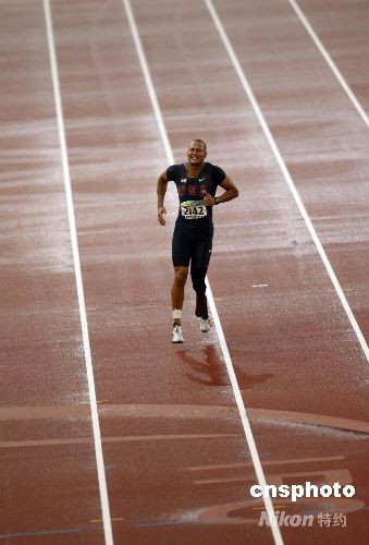 9月9日,北京殘奧會男子100米-T44決賽中,美國選手馬龍·雪利在中途不慎摔倒,他爬起后獨自完成了比賽,獲得賽場一片掌聲。 中新社發(fā) 杜洋 攝