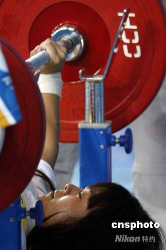 9月9日,北京殘奧會(huì)舉重比賽在北京航空航天大學(xué)體育館展開首日的爭(zhēng)奪,在女子40公斤級(jí)的比賽中,烏克蘭選手利季婭-索洛維約娃以100公斤的成績(jī)奪得金牌,此外,她還以105.5公斤的成績(jī)創(chuàng)造了新的殘奧會(huì)紀(jì)錄。中國(guó)選手崔哲奪得銀牌,成績(jī)?yōu)?5公斤,墨西哥選手勞拉-塞雷羅獲得一枚銅牌,成績(jī)?yōu)?2.5公斤。 中新社發(fā) 盛佳鵬 攝