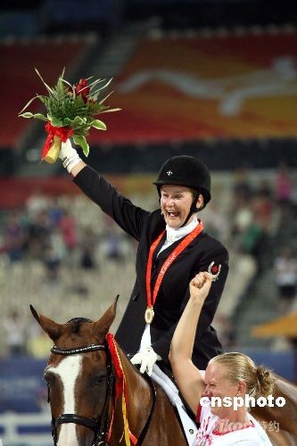 九月十日晚,來自加拿大選手勞倫·巴威克在香港殘奧馬術(shù)個人自選動作科目-級別II上奪得金牌。中新社發(fā) 洪少葵 攝