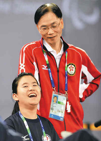 9年前,13歲的小,撨只是一個(gè)熱愛投球的小女孩,沒想到卻在香港殘障人士運(yùn)動(dòng)會(huì)的硬地滾球比賽中一鳴驚人,被香港隊(duì)看中,“成了最小的香港隊(duì)隊(duì)員”。說這話時(shí),父親郭克榮一臉慈祥和自豪!鞍职质俏业慕叹,但是他好嚴(yán)格。”言下之意,訓(xùn)練時(shí),海瑩沒有得到任何優(yōu)待。“球場(chǎng)上沒有父親這個(gè)稱謂,”這是郭克榮一再強(qiáng)調(diào)的:“因?yàn)檫@是一個(gè)集體,照顧她就是對(duì)其他隊(duì)員的不公!