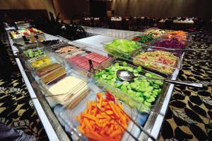吳世森介紹說:“針對殘奧帆賽的特殊需求,我們的菜單8天一循環(huán),每餐的食品達(dá)220多種。在菜品配置上更加注重了營養(yǎng)搭配合理,菜品均低鹽、低糖、低脂肪,少流質(zhì),以高蛋白、多纖維素為主,深受客戶歡迎。此外,在主餐廳內(nèi)提供了清真食品等特殊服務(wù),運(yùn)動員可結(jié)合各自口味自助取餐!