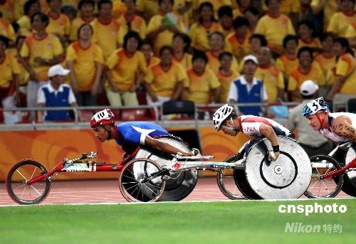 9月11日晚,北京殘奧會田徑比賽繼續(xù)在奧林匹克公園內(nèi)的國家體育場“鳥巢”舉行,在男子5000米-T54級決賽中,泰國選手巴越·沃霍倫一路領(lǐng)先,并在最后時刻頂住各路選手的反撲,在這個一直被歐美強(qiáng)手統(tǒng)治的項(xiàng)目中奪得冠軍。中新社發(fā) 任晨鳴 攝