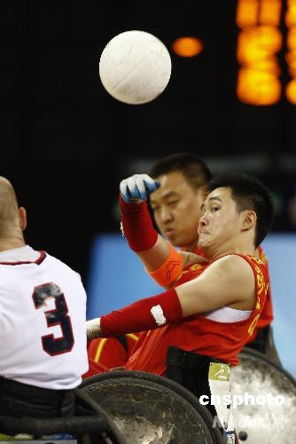 9月12日,北京殘奧會(huì)輪椅橄欖球展開首日比賽,東道主中國隊(duì)以30比65的比分不敵美國隊(duì)。 中新社發(fā) 杜洋 攝