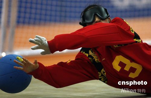 9月14日,北京殘奧會(huì)盲人門球女子金牌爭(zhēng)奪戰(zhàn)中,美國(guó)隊(duì)?wèi)?zhàn)勝中國(guó)隊(duì)獲得冠軍。中新社發(fā) 杜洋 攝