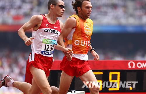 加拿大選手賈森·鄧克利(左)在領(lǐng)跑員的引導(dǎo)下進(jìn)行比賽。新華社記者 張燕輝 攝