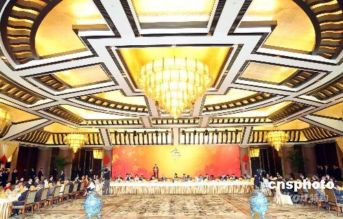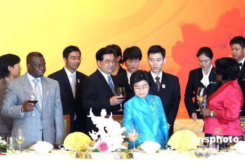 9月17日,中國國家主席胡錦濤與夫人劉永清在北京釣魚臺國賓館芳菲苑舉行宴會歡迎出席北京殘奧會閉幕式的國際貴賓。中新社發(fā) 廖文靜 攝