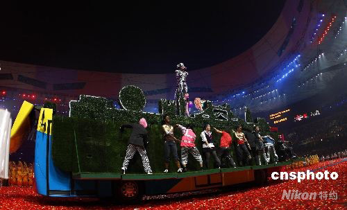 9月17日晚,北京2008年殘奧會(huì)閉幕式在國家體育場舉行。在閉幕式上下屆舉辦城市英國倫敦進(jìn)行了“倫敦八分鐘”表演。 中新社發(fā) 杜洋 攝