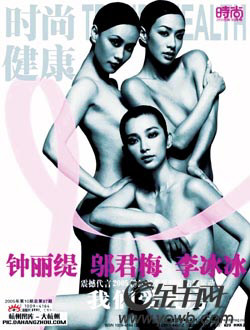 那次極具視覺沖擊和公益性的封面大片,這是當時中國時尚界一次史無前例的拍攝。她們以此傳達的關注女性健康與美的誠摯愛意!懊恳粋女人都是美的。而美的前提是健康、完整,所以請珍愛自己,珍愛健康,珍愛乳房!倍粏柤盀槭裁纯梢越邮苋绱顺叨鹊呐臄z,她們的回答是“因為粉紅絲帶!只為粉紅絲帶!”