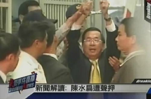 圖:陳水扁被聲請(qǐng)羈押 銬往法院出庭聽(tīng)判