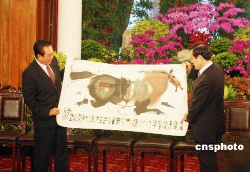 圖:陳云林向馬英九贈(zèng)送畫(huà)作《駿馬圖》