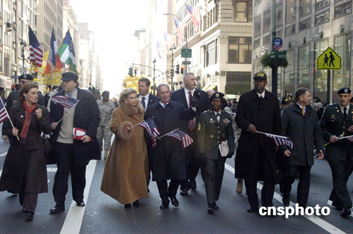 紐約市長(zhǎng)彭博參加退伍軍人節(jié)游行