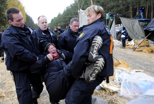 圖:德國(guó)出動(dòng)大量警員驅(qū)離反核示威者