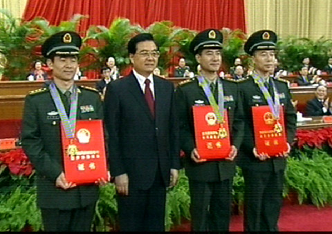圖:胡錦濤為“神七”飛天三英雄授勛