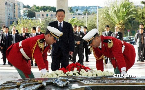 吳邦國向阿爾及利亞無名烈士紀(jì)念碑敬獻(xiàn)花圈
