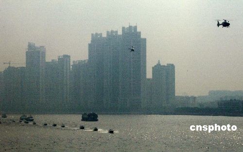 圖:廣州警方進(jìn)行海空聯(lián)合演練
