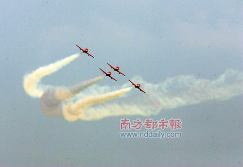 圖:印度“陽(yáng)光”特技飛行隊(duì)珠海試飛